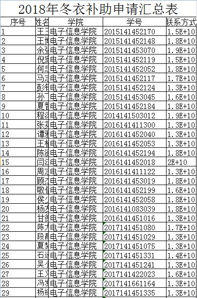 经过同学们自愿申请,学院评议小组评议,现将2018年度太阳集团tyc9728冬衣补助推荐名单公示如下(考虑安全问题,公示名单隐去部分姓名和联系方式):