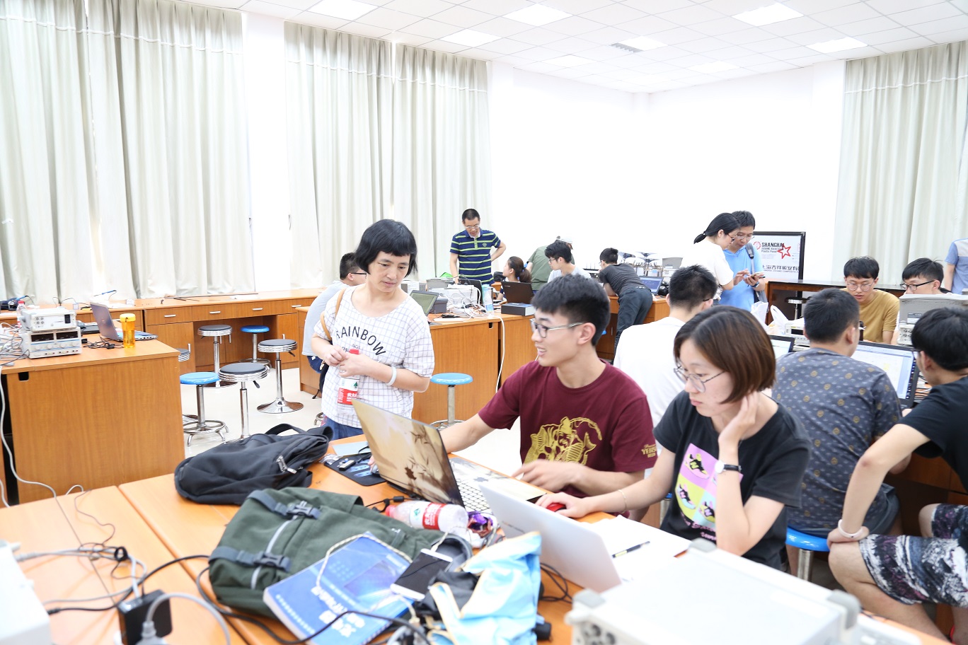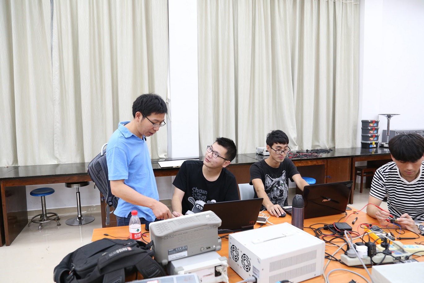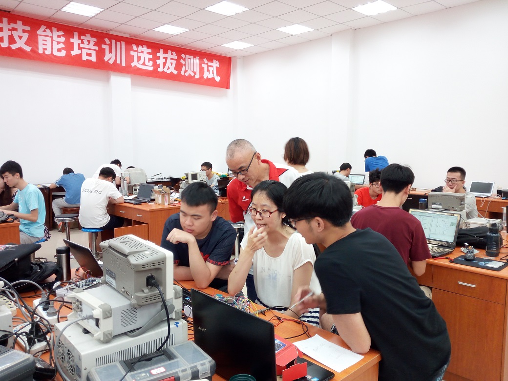 本次赛前培训共有来自学院船模协会、电子竞赛协会、电磁智能车协会等二十余个学术型社团的通过选拔的同学参加,赛前培训主要从双向DC-DC变换器、简易数字示波器、承载平台平衡调整系统以及增益可控视频放大器等几个方面进行,通过选拔的同学,三人为一组,以团队的方式进行赛前培训。