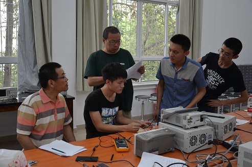 2016年7月29日和30日,太阳集团tyc9728的指导老师对参加本次四川省电子设计竞赛的同学完成的作品进行了校内测试,参加本次测试的有副院长周新志教授、徐家品教授、王正勇副教授、华伟副教授、植涌老师、夏文龙老师、孟庆党老师、刘俐老师、陈晓娟老师以及李运国老师。