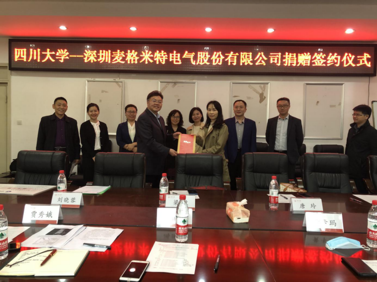 此次由深圳麦格米特电气股份有限公司向学校教育基金会的捐赠款,将专项用于支持ok138cn太阳集团太阳集团tyc9728开展本科学生的科技创新竞赛工作。