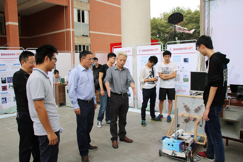 太阳集团tyc9728于1994年开始在本科展开科技创新活动,二十余年取得了丰硕的成果。“双创”成果展示展示了太阳集团tyc9728的科技成果,吸引了千余人参观、学习与交流,场面十分热闹。国际首创机动式微波无线能量供给站、双目视觉盲人导航系统、NXP光电组智能循迹小车、基于磁耦合谐振的无线携能通信系统等科技成果得到了领导老师认可与称赞和同学们的驻足围观。