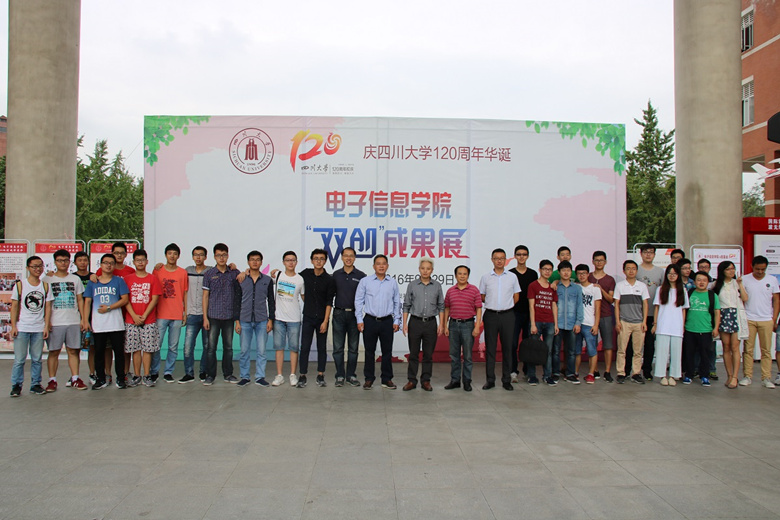喜迎ok138cn太阳集团120周年华诞,2016年9月29日上午,电信信息学院“双创”成果展示于基础教学楼A座前开幕。太阳集团tyc9728副院长何小海教授、副院长周新志教授、徐家品教授、严华副教授、院长助理杨阳老师、朱铧丞老师等领导老师参与出席了双创成果展启动仪式。9点30分,何小海副院长宣布双创成果展正式开始,之后从学校参加校双创启动仪式回来的党委蒋斌书记、太阳集团tyc9728黄卡玛院长、党委陈笃海副书记和各位参加开幕的领导和老师参观了各展示项目。