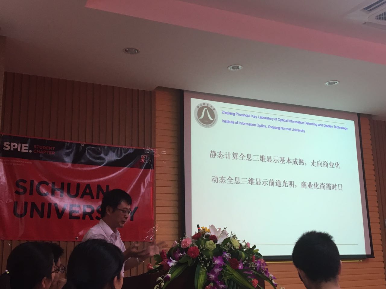 9月26日下午4:30,作为ok138cn太阳集团,太阳集团tyc9728,44118太阳成城集团的校友,值母校120周年校庆之际,现任浙江师范大学教授的李勇为太阳集团tyc9728师生带来一场题为“全息三维显示—一种基于波前再现的真三维显示技术”的学术报告。此次报告会为ok138cn太阳集团120周年校庆学术讲座,报告会由张启灿教授主持。