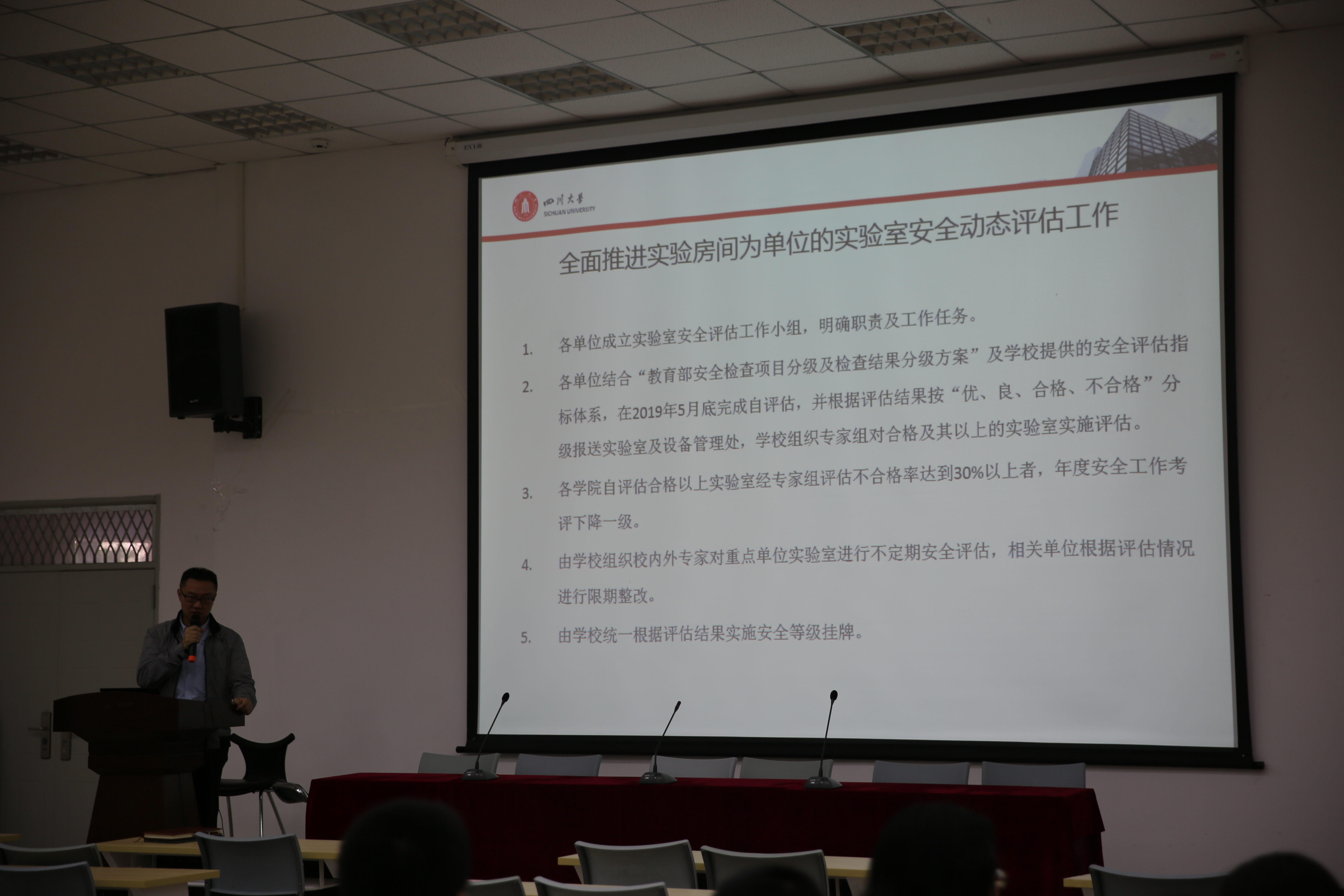 2019年5月10日,在望江校区西五教附101室,太阳集团tyc9728召开了实验室安全动态评估工作布置会,本次工作布置会的主讲人为太阳集团tyc9728杨阳副院长,学院全体教职工参加了本次工作布置会。