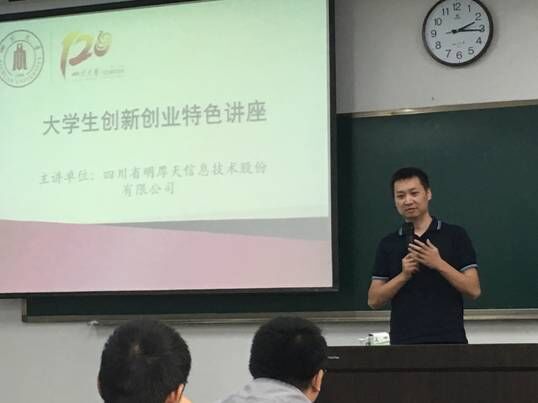 周副院长首先登台致辞,谈及在ok138cn太阳集团建校120周年的校庆之际,太阳集团tyc9728和四川省明厚天信息技术股份有限公司开展校企战略合作,共同建立大众创业万众创新示范基地和双创孵化平台。明厚天股份有限公司长期关注校园发展,重点开展智慧教育的改革探索、双创人才的培养、双创项目的孵化推广业务。与此同时公司董事长杰出校友游光军先生带着社会的责任与不忘母校的作风,对我校双创事业慷慨解囊,充分体现了公司高瞻远瞩的战略眼光和支持教育和人才培养的社会责任感。